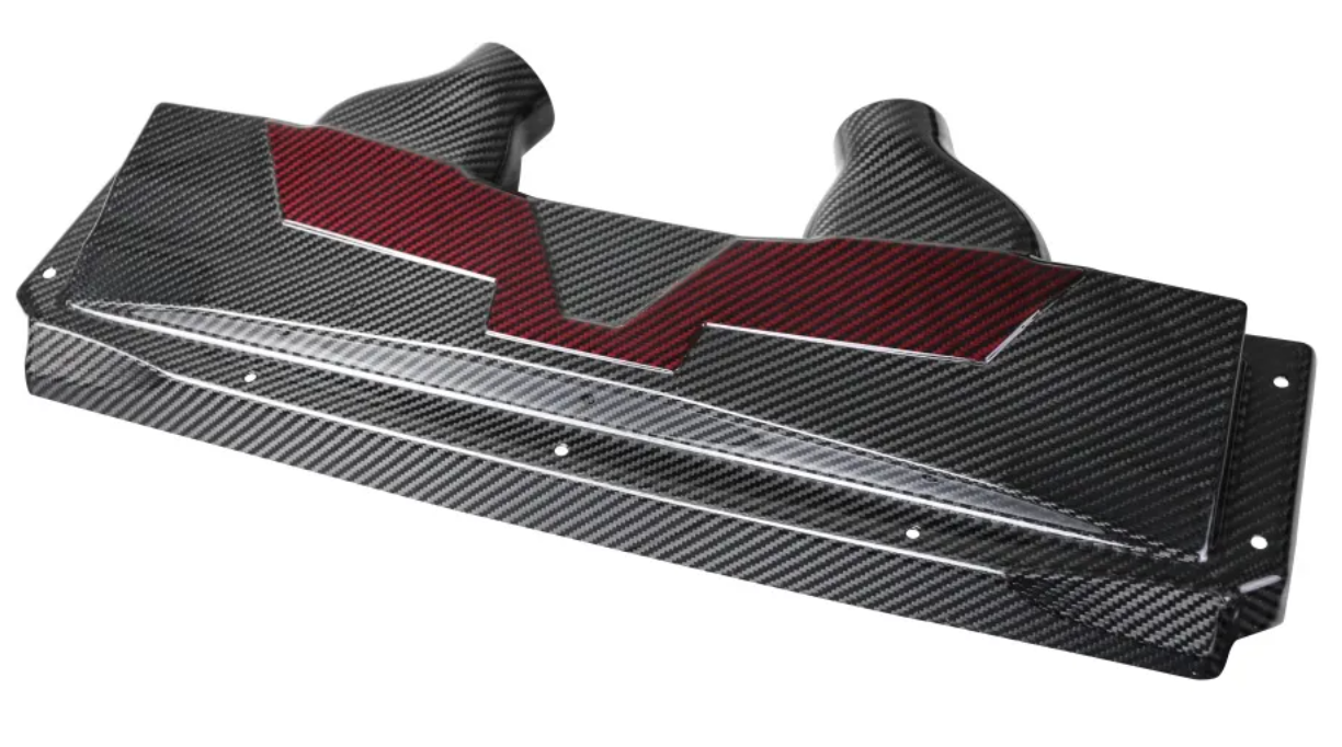 Made with fine carbon fiber. Red Kevlar gives you a more furious look under the hood. This highly stylized gloss carbon fiber cover is an upgrade that will completely transform your engine bay with a form-fitting gloss carbon fiber intake cover. Upgrade your engine bay in minutes with this easy-to-install trim piece for Audi RS6 C8 intake platforms.