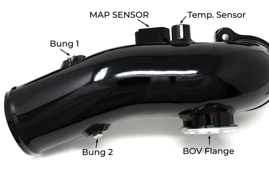 Upgrade your flimsy OEM B58 BMW charge pipe to our heavy-duty aluminum replacement to prevent charge pipe failure. Designed and manufactured by Burger Motorsports in the USA. The BMS Elite is the highest quality B58 charge pipe upgrade on the market. This replacement charge pipe features all-aluminum construction, high-quality glossy black finish, CNC machined flanges, 2 optional 1/8″ NPT methanol bungs, OEM style mounting hardware for a direct fit, and a lifetime warranty. Because we use the OEM mounting system, unlike other charge pipe solutions, this charge pipe installs in minutes, retains all emissions fittings, and is 100% reversible. Lifetime warranty. Made in the USA.