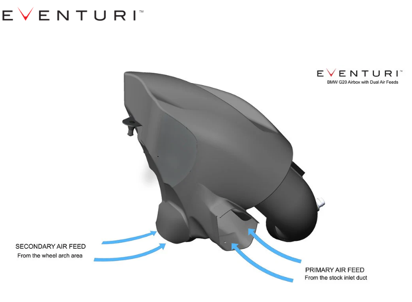 The G2X M340i / M440i / G42 M240i B58 Eventuri system uses our Patented Carbon Fiber Housings with our Gen 2 bespoke filters, which provide an aerodynamically efficient airflow path from the filter to the turbos. Not just another cone filter with a heat shield but a unique design which invokes the Venturi affect and maintains laminar flow conditions to reduce the drag on the turbo.