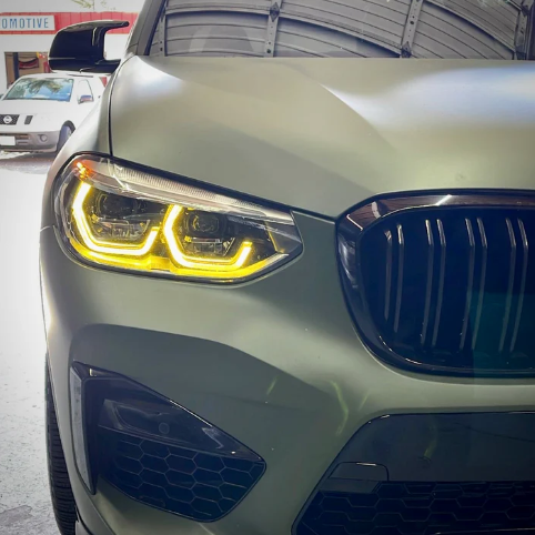 The F97 X3M F98 X4M LED headlights already look great with the large etched angular style rings but BMW still left room for improvement. Luckily we have exactly what you need so you can give them a race inspired look with our CSL Yellow DRL upgrade.