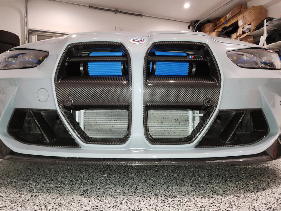 Finally, a silicone intake system worthy of your G8x & F9x S58 Powered BMW! The Front Mount (behind the grille) BMS S58 Performance Intake completely removes the restrictive OEM intake and replaces it with 3.5″ high flow ducting and BMS inverted cone performance air filters. The filters are placed behind the front grilles for maximum cold air induction, amazing sound, and intriguing looks.
