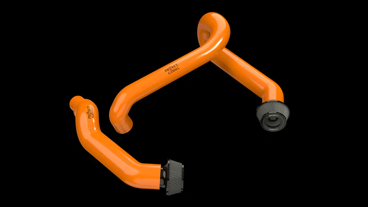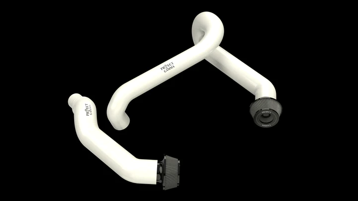 Project Gamma intakes for the BMW M3 | M4 (G80/G82) feature a 4 layer reinforced ply silicone with oil resistant lining and aluminum hose connections to improve airflow, increase horsepower, and add style to your engine bay.