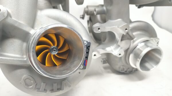 VTT S55 GC Turbochargers.  GC stands for “Game Changers” and that is exactly what these do! They bring a fully new casting Stainless Steel turbine manifold/housing, all new compressor housing with single-piece high flow inlet, as well as our tried, and true V2 GC CHRA with a Mar-M246 GTX28 profile turbine wheel, and custom compressor wheel. These turbos have NO core charges, keep your stock turbos, sell them, hold them if you want to go back to stock, etc. The turbos will come with custom VTT silicone inlet hoses to mate up with all inlets on the market making them 100% plug, and play. There is no better, more powerful, or well thought out upgrade on the market at any price point!