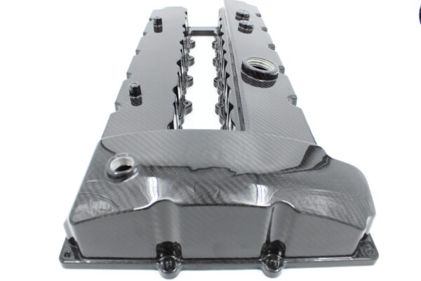 Yes, we really did it. We took our extremely popular cast, and Billet N54 valve cover, and had it fully molded out of Multi-Layer Carbon Fiber with a UV resistant clear coat for strength and durability. It has a billet machined gasket surface, and billet -10ORB ports again for added strength and for use with our Modular N54 PCV systems. This is the ONLY N54 VC on the market that is LIGHTER than stock, and allows you to fully get rid of the factory PCV, and oh did we mention its CARBON FIBER!
