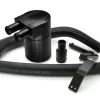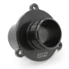 The factory baffled “turbo muffler” was designed to reduce compressor noise and acoustics at the expense of response and airflow. Our replacement eliminates the baffle not only improving flow but also increasing that intoxicating turbo compressor sound under heavy throttle. Great care was taken in the design to provide the maximum possible internal diameter for flow improvement while retaining an OEM like fit and seal. We kept the design one piece despite the higher machining cost to minimize boost leak points. Comes preassembled with a new o-ring already installed for a simple remove and replace swap. CNC machined from billet aluminum and anodized black for a lifetime of trouble free performance.