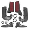 The kit comes with:2 carbon airbox cover2 plastic airbox bottom2 carbon ram air duct4 silicon adapter hoses (black)2 high performance air filter mats1 mounting material1 installation instruction