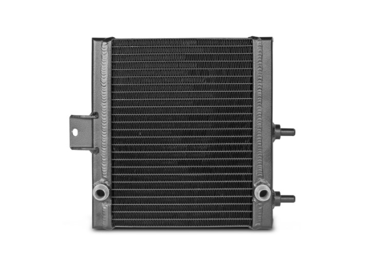 The new developed competition racing cores of the WAGNERTUNING high performance water coolers increase the radiator volume of the OEM water coolers by 89% for front mounted and 94% for side mounted. The calculated ratio between the inner and outer cooling surface generates a maximum heat transfer and allows at the same time enough air flow for the surrounding components (for example the engine water cooler) for its own heat exchange. The water coolers are equipped with a heat-conductive anti corrosion coating to ensure a lasting cooling effect. The nearly plug & play installation of the system is simple and easy to perform (an installation instruction is included as well).